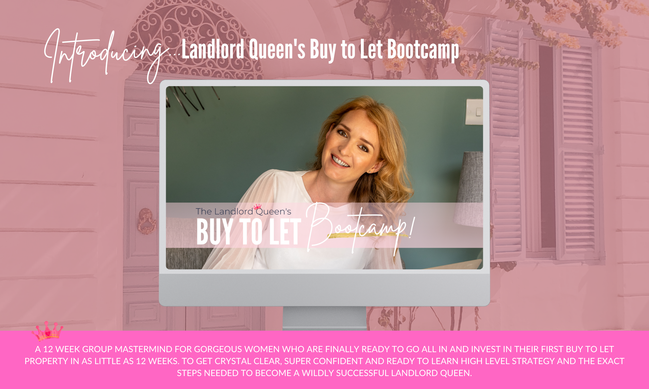 A 12 week group mastermind for gorgeous, smart women who are finally ready to go all in and invest in their first Buy to Let property in as little as 12 weeks. To get crystal clear, super confident and ready to learn high level strategy and the exact steps to become a wildly successful Landlord Queen.
